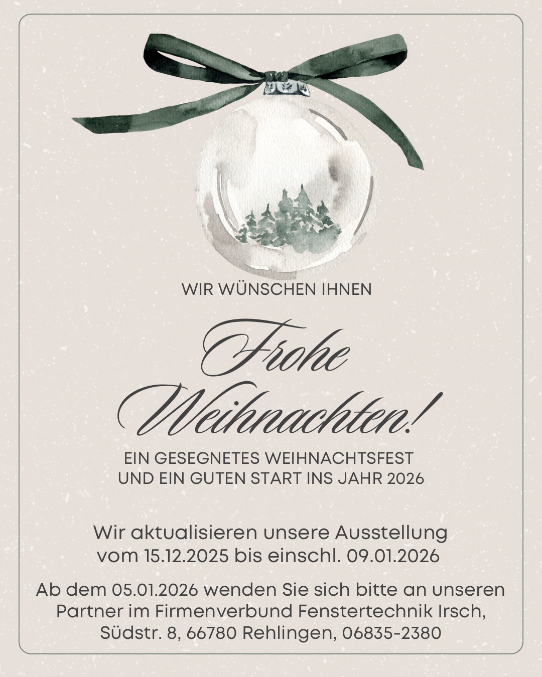 „Unsere Familien KALLENBORN + IRSCH führen ihre Unternehmen KALLENBORN-IRSCH GmbH und FENSTERTECHNIK IRSCH GmbH unter dem familiären Dach „Firmenverbund Familien KALLENBORN + IRSCH“.